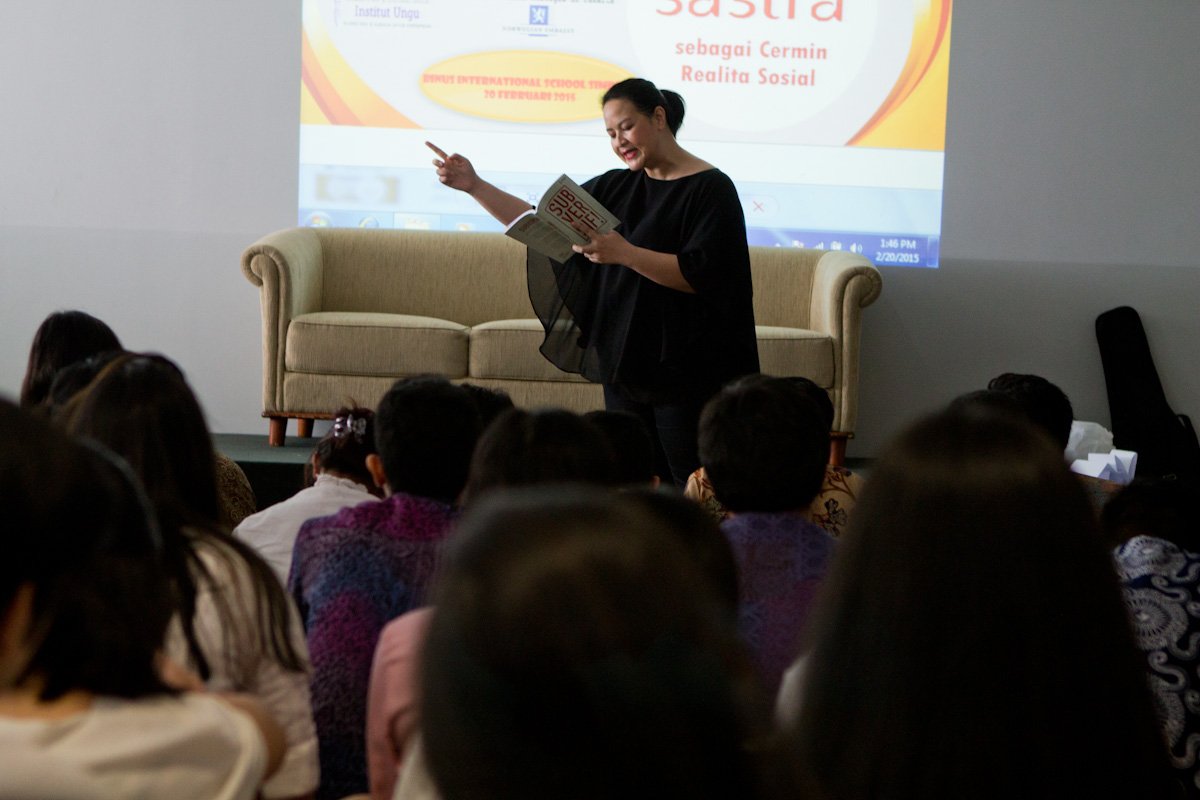 Berbincang sastra dan Ibsen dengan dinamis “Ibsen Goes To Campus”di Binus International School Simprug, Jumat, 20/2/15 bersama Iswadi Pratama(Sutradara Teater Satu Lampung) dan Faiza Mardzoeki (Penulis Naskah dan Produser Subversif!) dan Sita Nursanti (Aktor Subversif!).